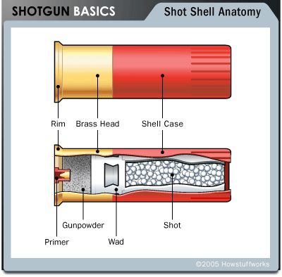 Shotgun shells are not terribly dangerous by themselves — it’s only when you get that open-ended tube around them that things get interesting. If you set one off independently of an enclosed space, it would go pop and a few people might get burnt or cut, but it wouldn’t be any kind of terrorist weapon.