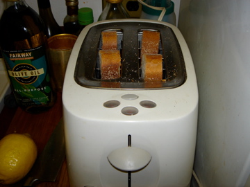 A restauranteur I know told me to toast the bread before making croutons.