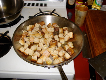 Croutons underway – you can cook them even a day ahead.