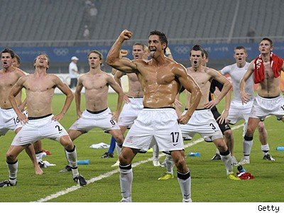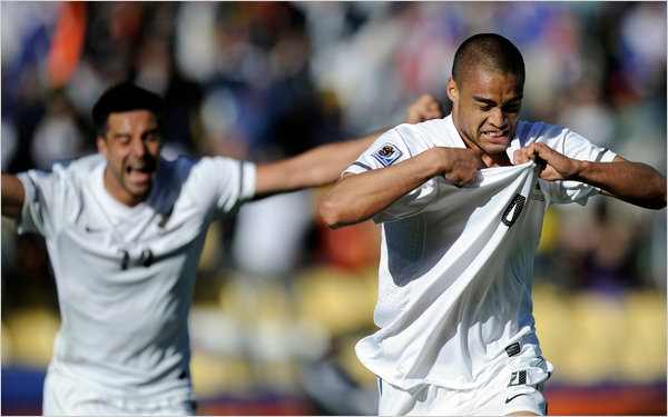 Then I discovered that the All-Whites* love to take their shirts off. So in honor of their great achievement, bringing overwhelming joy at 2:30 in the morning to our funny-talking socialist cousins of the South Pacific, the entire New Zealand soccer team is hereby deemed the World Cup Hotties of the Day.