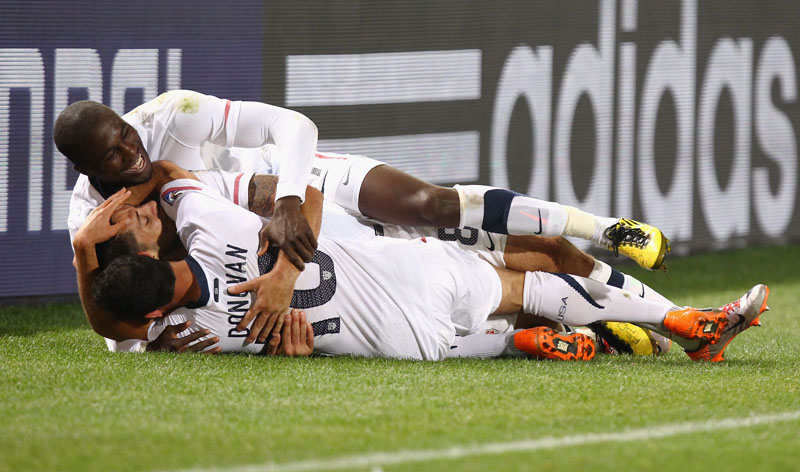 (From top to bottom of the threesome: Jozi Altidor, Clint Dempsey, and Landon Donovan)