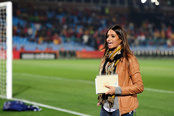 Carbonero covering the Spain-Chile game, or at least looking beautiful: