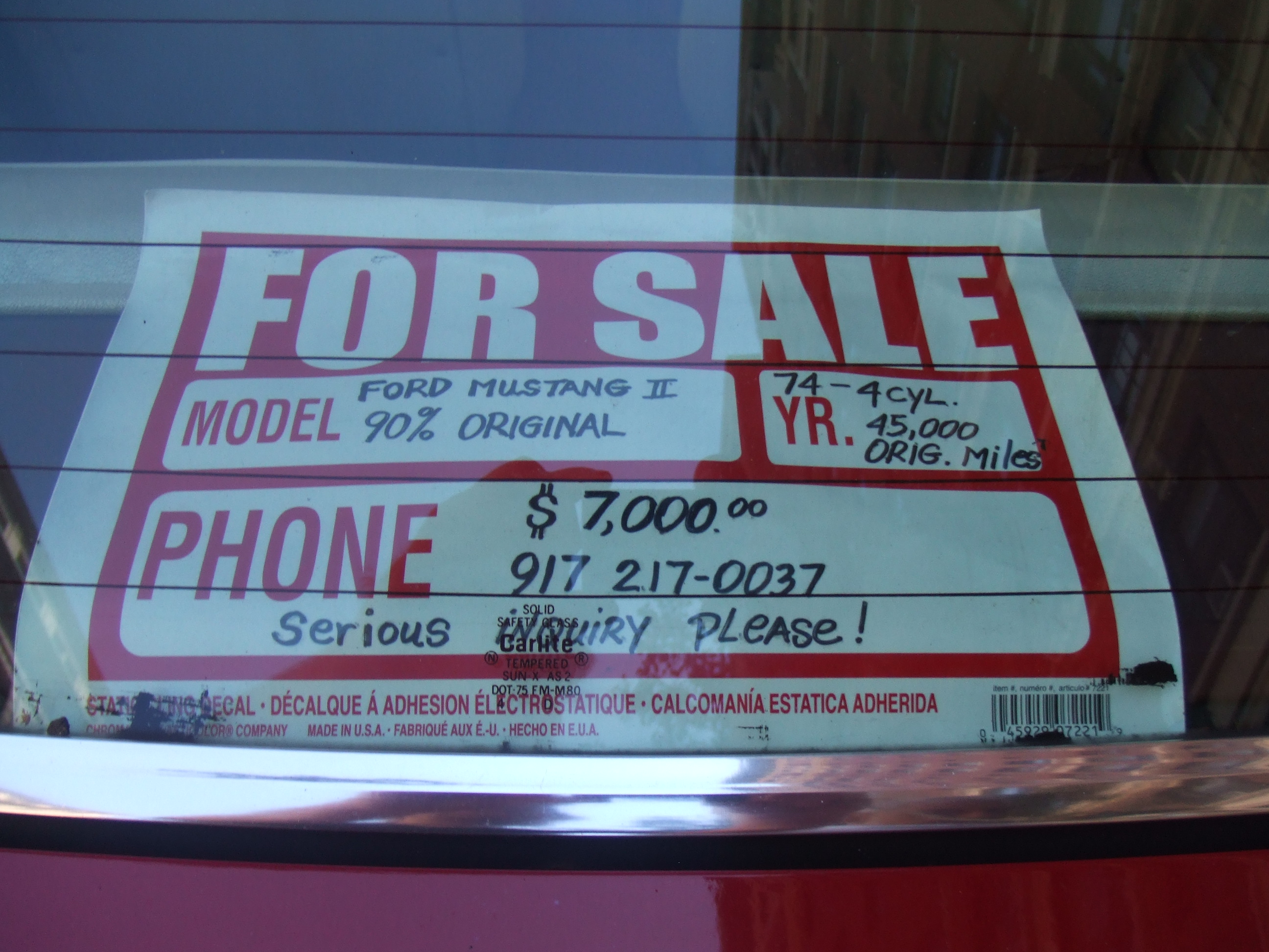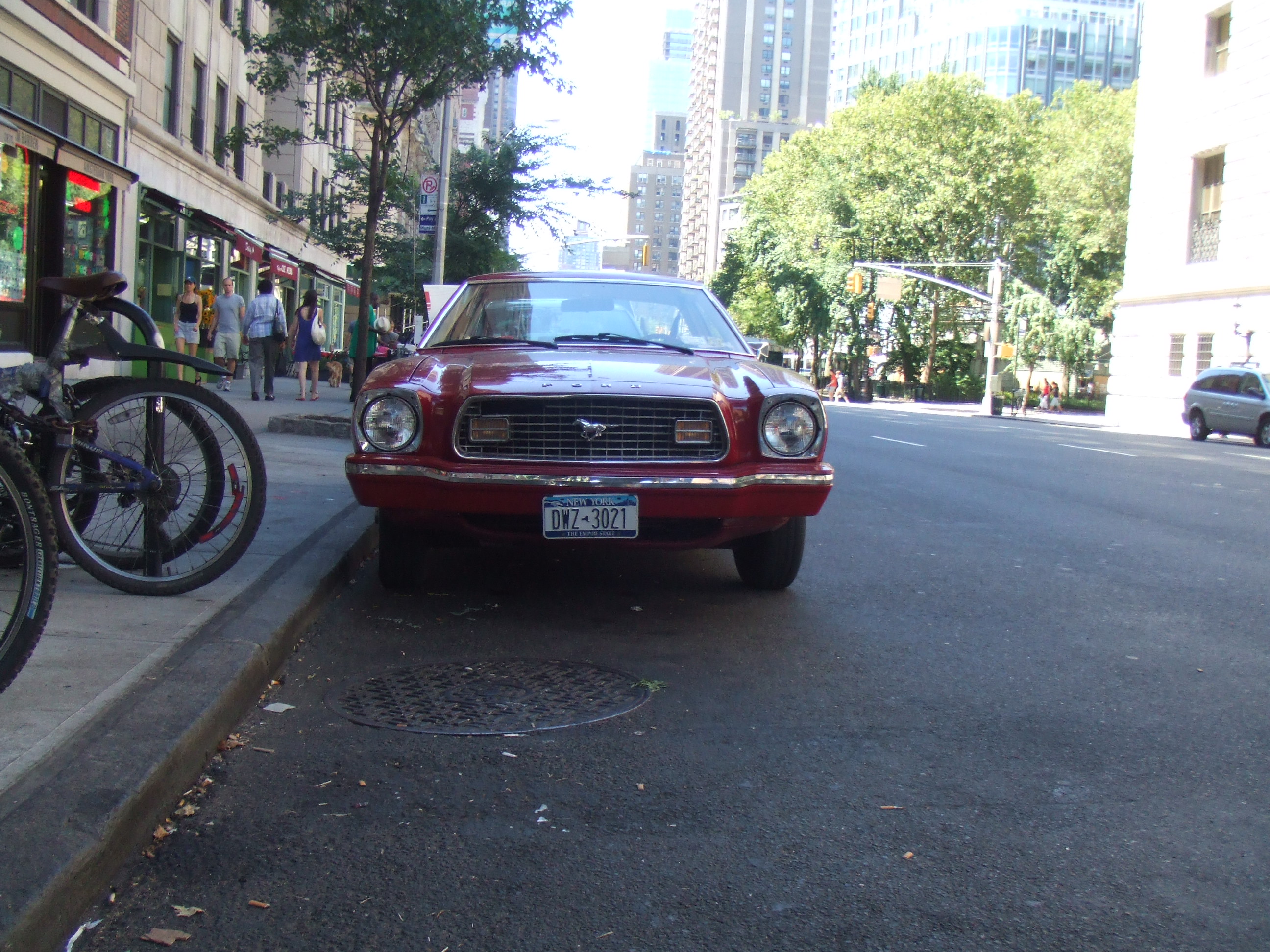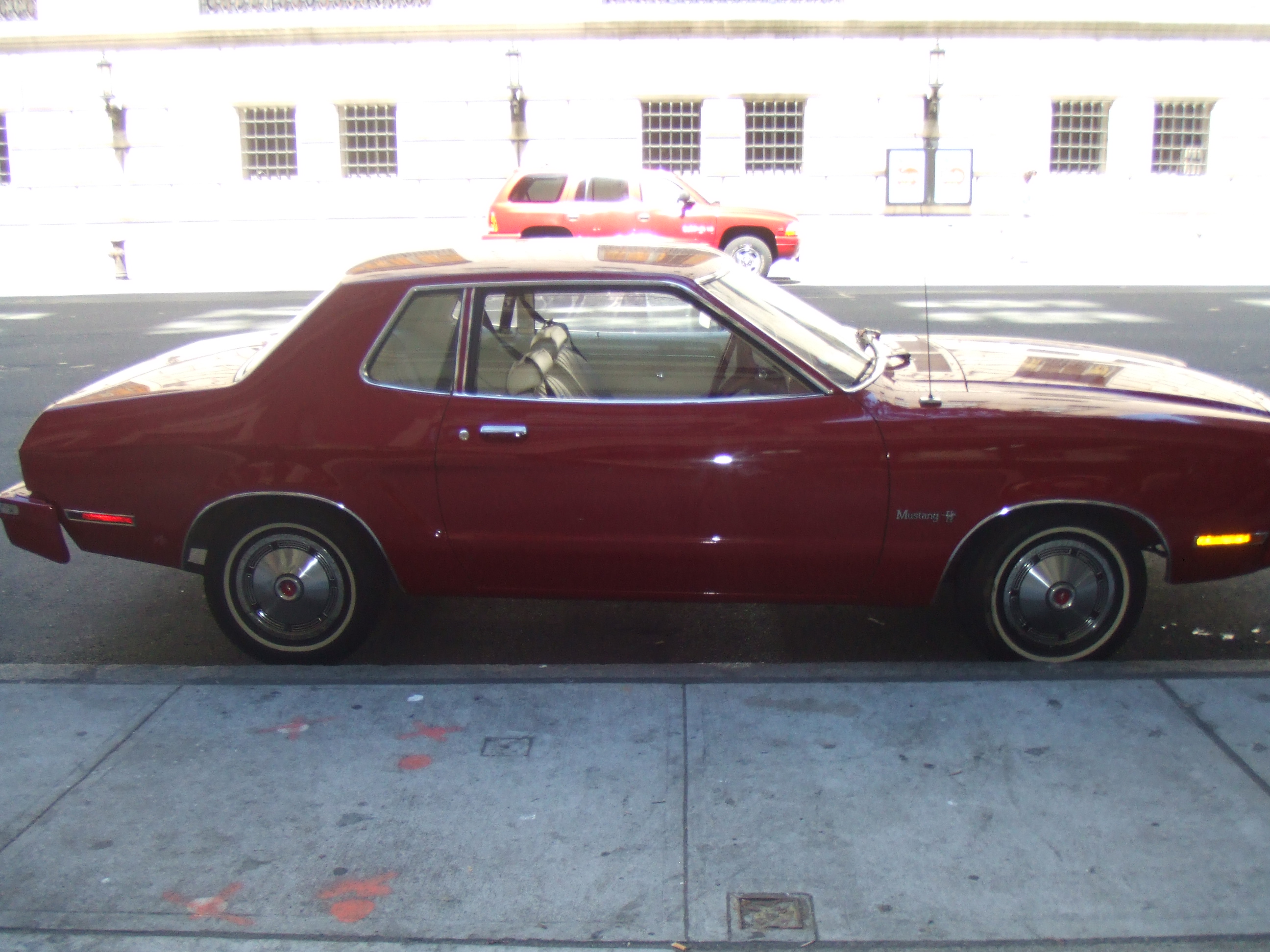 Jalopnik has a regular feature – Down on the Street – where they post photos of old cars, usually in Alameda, California, “The Island that Rust Forgot”. Can Stinque compete? Check this out – corner of 74th and Amsterdam just this morning, in front of my building – a 1974 Ford Mustang II, 45K, and it’s for sale! Seven grand takes it: