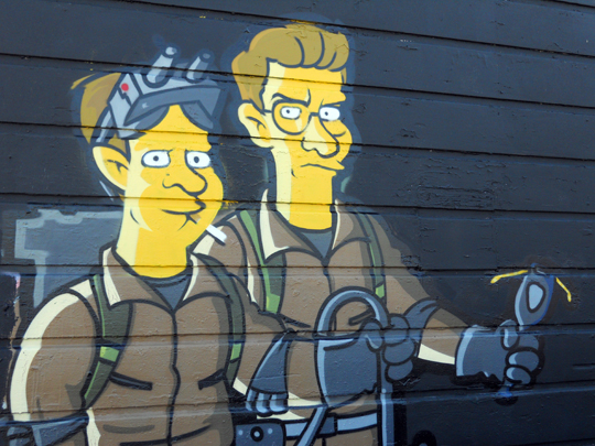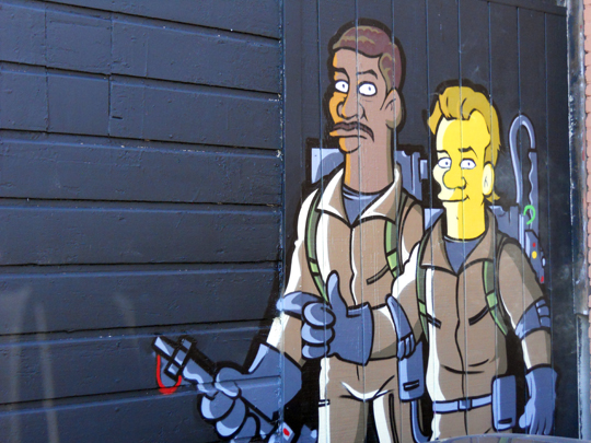 And it appears that a Matt Groening fan (or refugee from the animation studios in Korea) painted this homage to Ghostbusters: