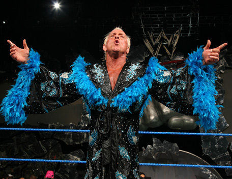 Maybe Ric Flair (pictured, above right) might run for Governor of North Carolina in 2012, just to test this theory further. Will his stylin’ and profilin’ play in the suburbs of Charlotte and the Triangle? He’s dipped his toe in this particular pool before. Maybe he’ll jump all the way in. WOOOOOOO!