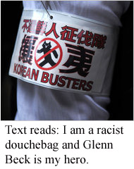 According to the Times, these groups are largely organizing through the internet and are made up mostly of young men, either jobless or working menial jobs. And unlike traditional far-right Japanese groups (who generally cruise around Tokyo in paramilitary-dress on the backs of trucks painted to resemble infantry vehicles, but otherwise seem to leave people alone) the new rabble rousers aren’t concerned about looking like a pack of douchebags by openly harrasing groups of foreign born children: