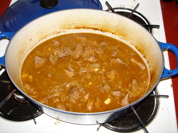 Tonight it’s Julia’s Carbonnades a la Flamande (Belgian Beef and Onions Braised in Beer):