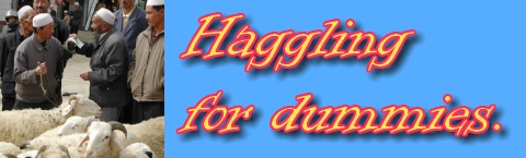 So this is how haggling is supposed to work: you’ve got a sheep herder named Akhbar, wants to sell one of his sheep. You’ve got a farmer named Muhamed who wants to buy a sheep. Akhbar knows that the going rate for sheep is 35 Kubokis, and he doesn’t want to sell his for any less. So he starts the haggling process by offering Muhamed a great deal on a fine, strong, young buck at 60 Kubokis. Muhamed also knows the going rate for sheep is 35 Kubokis and he refuses to pay a dime more, so he answers that the scrawny, sickly, old specimen before him isn’t worth more than 20 Kubokis. Akhbar is insulted by the paltry offer, but will give it to you for 50 Kubokis because he just wants to go home and doesn’t want the hassle of bringing the sheep with him. Muhammed doesn’t really even need a sheep, he just wants to buy a pet for his boy and he thought a sheep would do better than a dog, so he offers Akhbar 25 Kubokis. This back and forth continues until the two men settle on 35 Kubokis, which means Akhbar’s children will go hungry tonight and Mohamed’s wife will scold him all week for having wasted so much money on a worm ridden beast that will probably die within a week. Both men go home happy knowing that they got what they wanted.