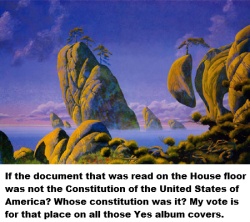 But was that what really happened? As a matter of fact, no, that’s not what really happened. In fact, the Constitution of the United States of America was pushed aside so that members could read aloud the Constitution of… I don’t know: La La Land, maybe? Whatever it was, it wasn’t the Constitution of the United States of America that was read aloud today: