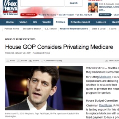 Well, now that they finally have control of the House, GOP leaders are not only threatening Medicare with cuts of their own (you mean the party that has derided Medicare as Socialism for 60 years didn’t really mean to strengthen and protect the system?) they are floating a plan to do far worse: they want to privatize the system, effectively ending Medicare altogether.