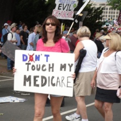 Rememeber the last two of years when Dick Army’s Tea Party engineered massive astroturf rallies against the Obama Administration by scaring seniors into believing that the President was going to implement large funding cuts to Medicare? The nation saw scenes of seniors on electric scooters attending anti-government TEA party rallies terrified by the prospect that the Obama administration was threatening their access to a Socialist, government run health insurance program.