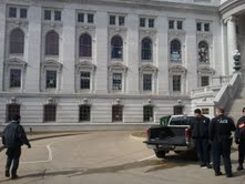 But the memory of the clenched-fist, roiling action was on display on the outside. On the south wing of the Capitol (which houses the Senate), you can see papers posted in several windows. These are the windows of the absentee Democratic senators, whose staffs had posted signs declaring solidarity. One wonders if the recent action by the Republican majority, to put these staffs under majority control until the Fleeing Fourteen return, might have these signs come down. But, for now, they stay.