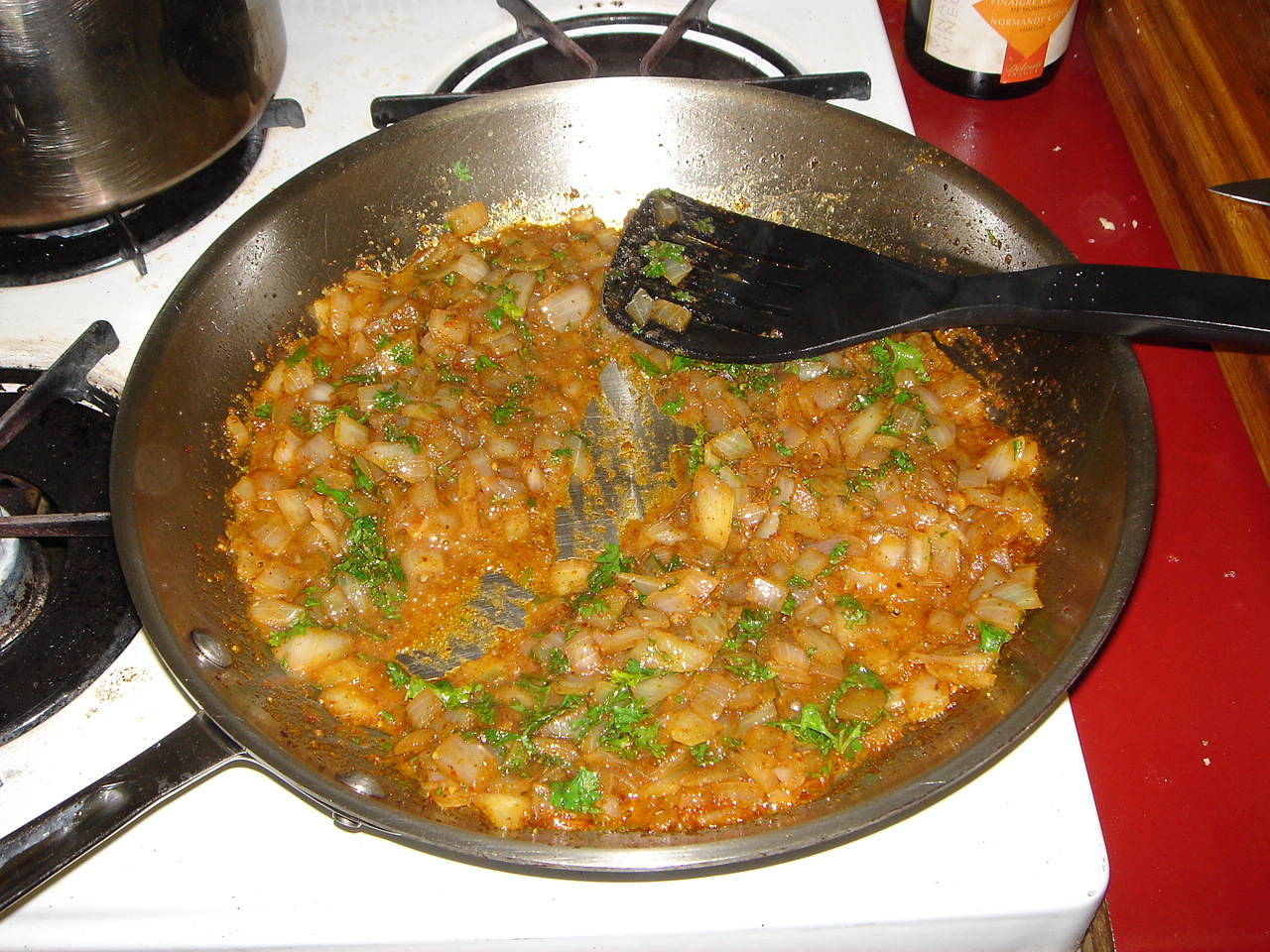 Then I threw in a half a handfull of freshly chopped parsley, a bit of dried parsley, and half a can of chicken stock.