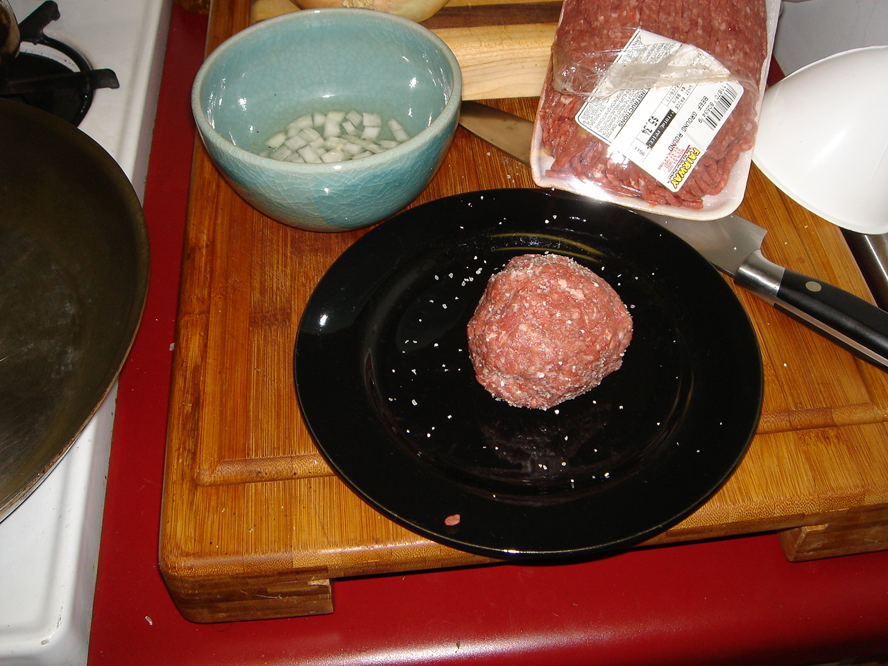 I made one the first time he had this up and even with using too lean meat, it was still pretty good. The second attempt I used what Ozersky recommended and it was out-of-this-world yummy. I cut the salt back a bit because I was using a little less meat, but it was almost best without any condiments whatsoever. A little schmear of mustard, perhaps, but nothing more.