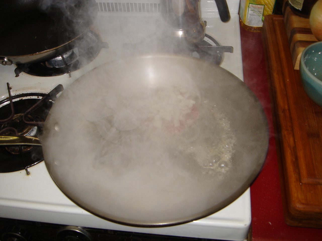 @karen marie has her eyes tight shut: don’t need a cast iron pan … as you can see, I used 12 inch AllClad pan … works great.
