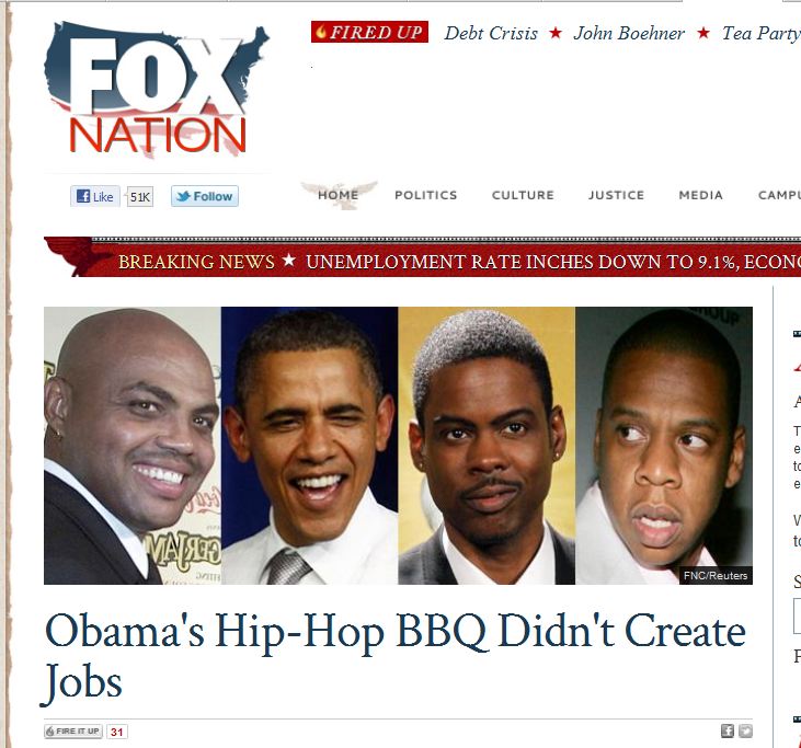 In these tough economic times, and as a public service, Fox Nation would like to remind you that the man currently occupying the White House is a nigger who hangs out with other niggers: