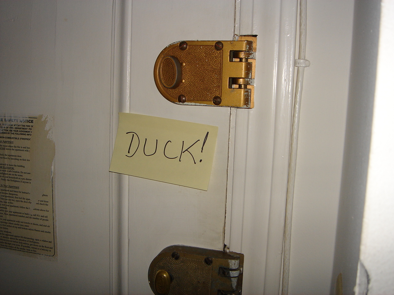 Donald (the duck) is in the oven for the first bit of roasting. This was the view of my front door yesterday morning, to remind me to defrost the duckling:
