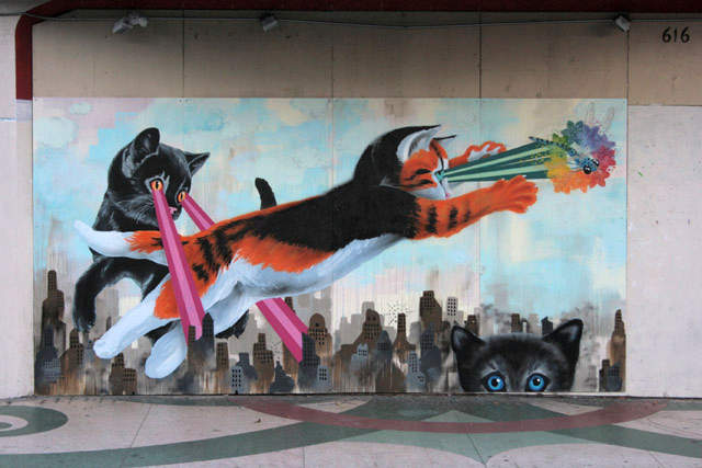 As cool as the Ghostbusters mural in the South of Market area of Ess Eff is a new mural that was installed by a group of artists at the abandoned Harding Theatre on Divisadero Street, just two blocks away from SF’s iconic Painted Ladies.