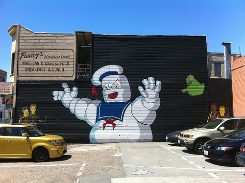 Imagine my delight this morning when Mr. SFL and I were driving down 8th Street to Trader Joe’s and discovered the newest addition to San Francisco’s collection of murals, painted on the side of a janky hole-in-the-wall Chinese restaurant.